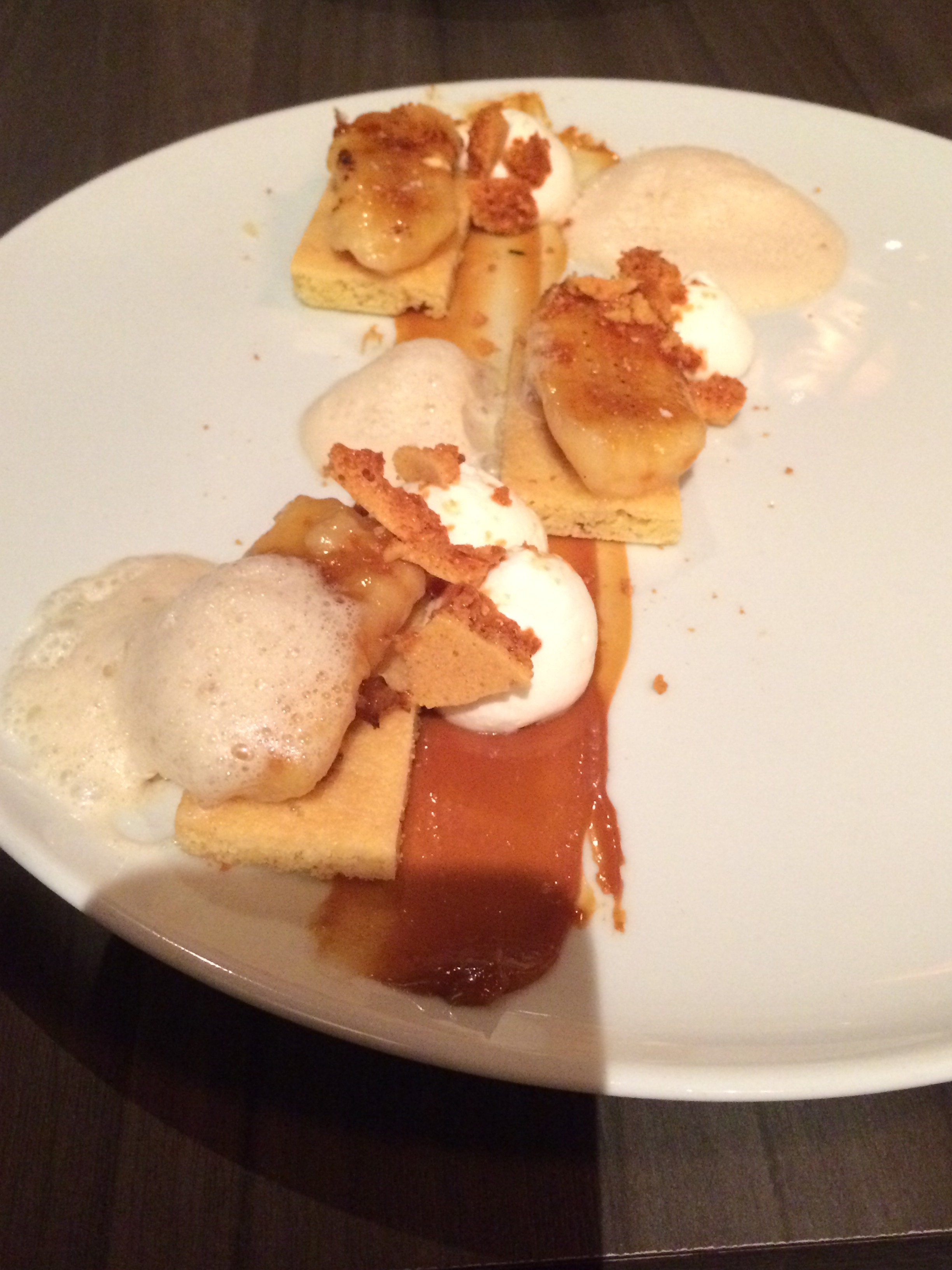 The dessert course brought things back on a more positive course for us. First was a white chocolate mousse topped with a squash granité. While the initial contrast between the ice cold granité and the mousse was quite strange temperature-wise, they was no denying that the flavours worked beautifully together.