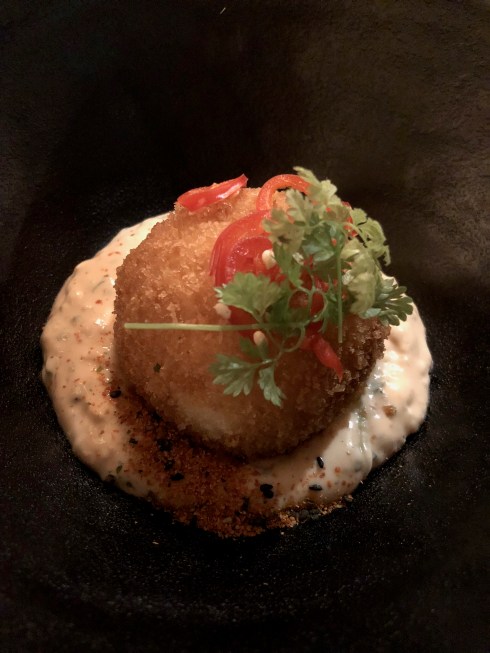 The second dessert was a ‘black jerusalem artichoke’ – a coffee-flavoured cake topped with chocolate mousse and rye crumble. Delicious texture to the cake and the chocolate mousse was smooth and rich. Personally, we don’t like coffee so that flavour profile wasn’t our favourite but excellent execution regardless.