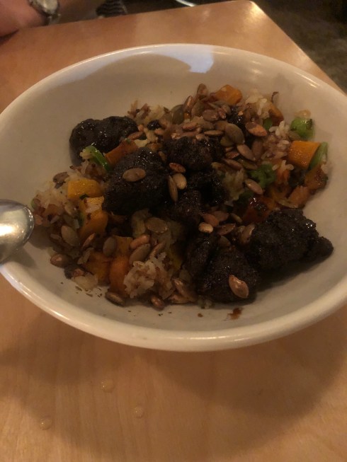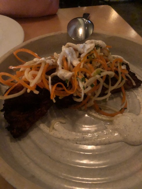 My wife went with the char served in a beurre blanc sauce with shishito peppers. Super tender fish with great flavour. The beurre blanc was the right balance of rich but not heavy. A perfect complement to the fish.