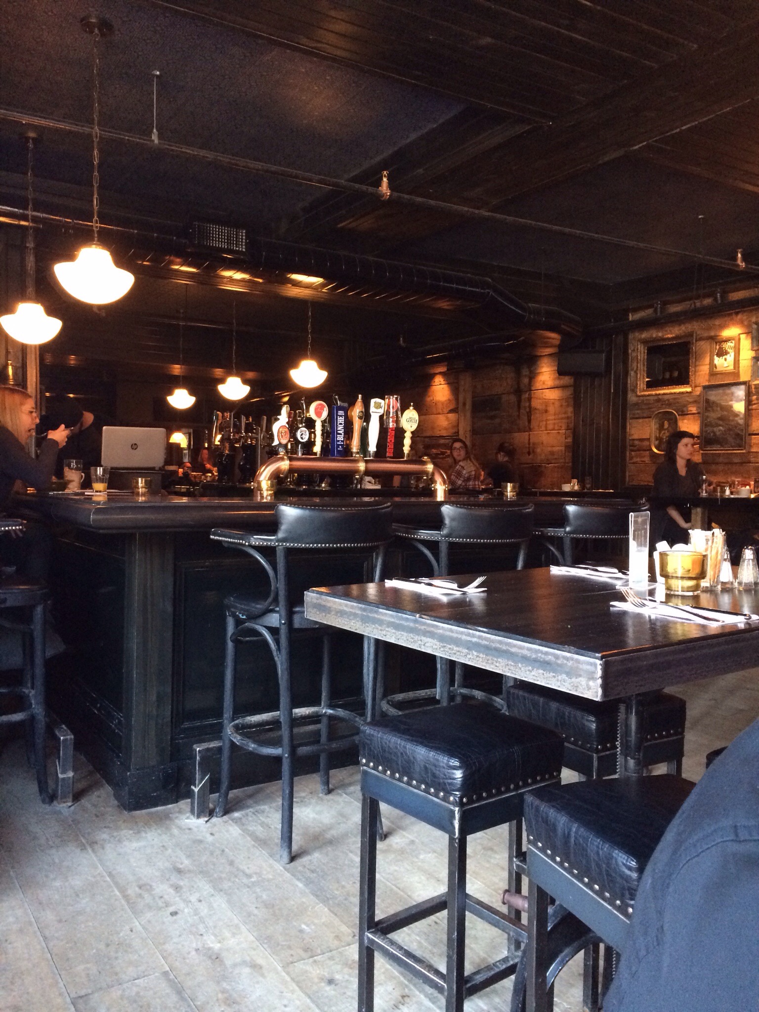First thing when I walked in that struck me was the decor – absolutely loved it. Classic pub look but without the ridiculous clutter you often end up with. Old wood-paneled walls – dark stained or just natural – with dark wooden tables, leather seats & stools and a beautiful dark bar as a focal point for the room. The whole space had a nice neighbourhood bar vibe where you can see easily coming in for a pint or two on a regular basis for a relaxed evening. It was a quiet Saturday so there wasn’t much ambience outside of us but regardless, it was a nice place to relax for the four hours we were there.