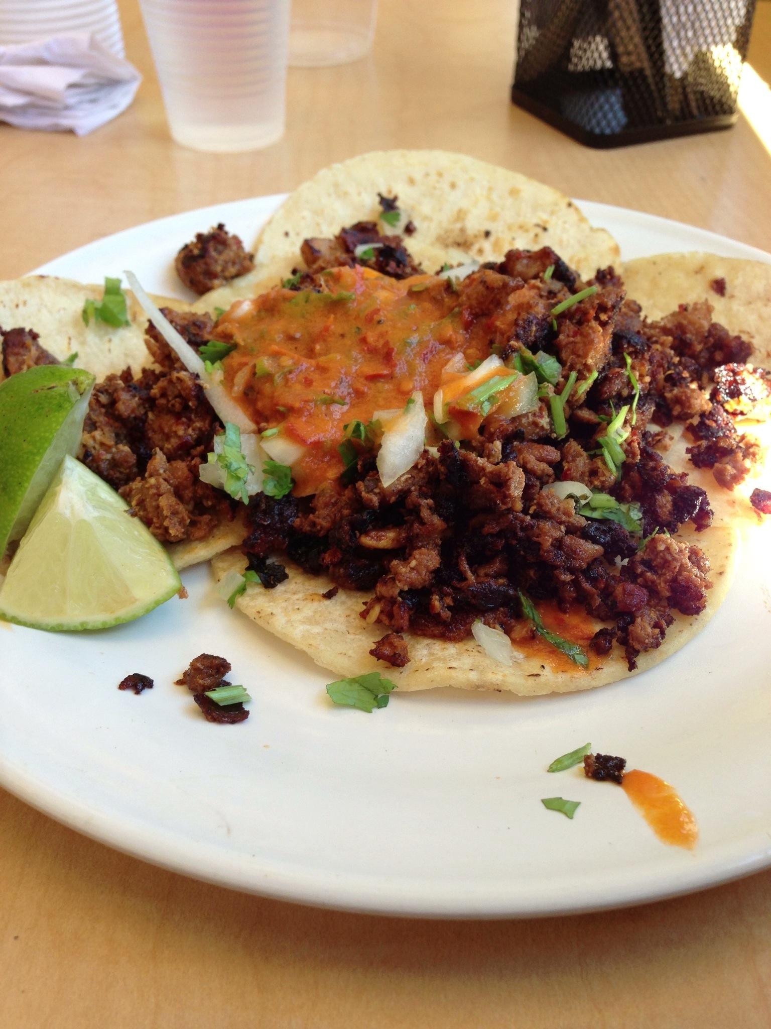 El Gordo has 9 standard taco flavours and a special of the day. The standard dish has 3 tacos each and they are pretty small size-wise. For me personally, 3 wasn’t enough to satisfy my hunger although the server said as much to me ahead of time. Just be aware of that when you order. My girlfriend ended up regretting not ordered more as she was still hungry later on. The good news is that each taco only comes up to 3-4$ a piece so the price is fair. I tried 3 varieties on this visit. First were the chorizo tacos – served with pickled onions, habareno jam, queso fresco and salsa verde. All the tacos are served on soft tortillas which is my preference. Nothing of that hard shell B.S. The chorizo was nice and tender and the rest of the topping provided a slightly sweet and spicy edge.