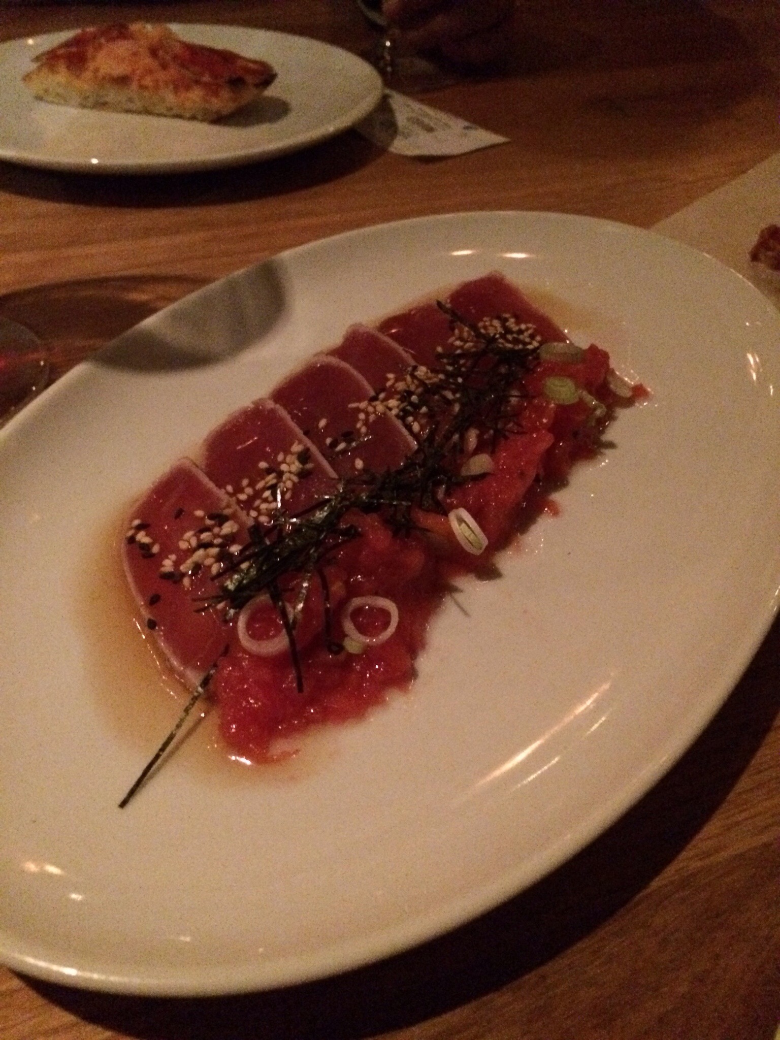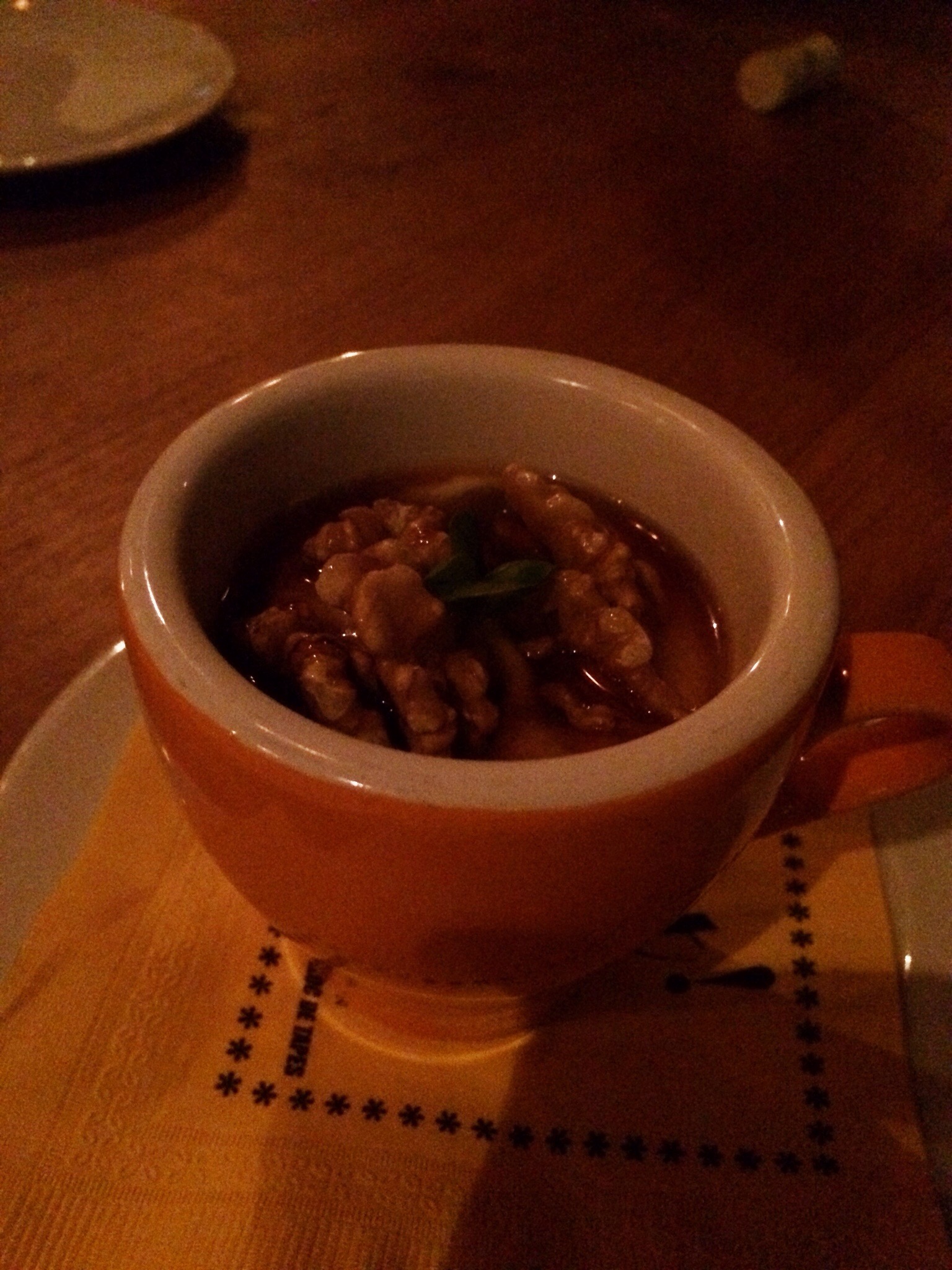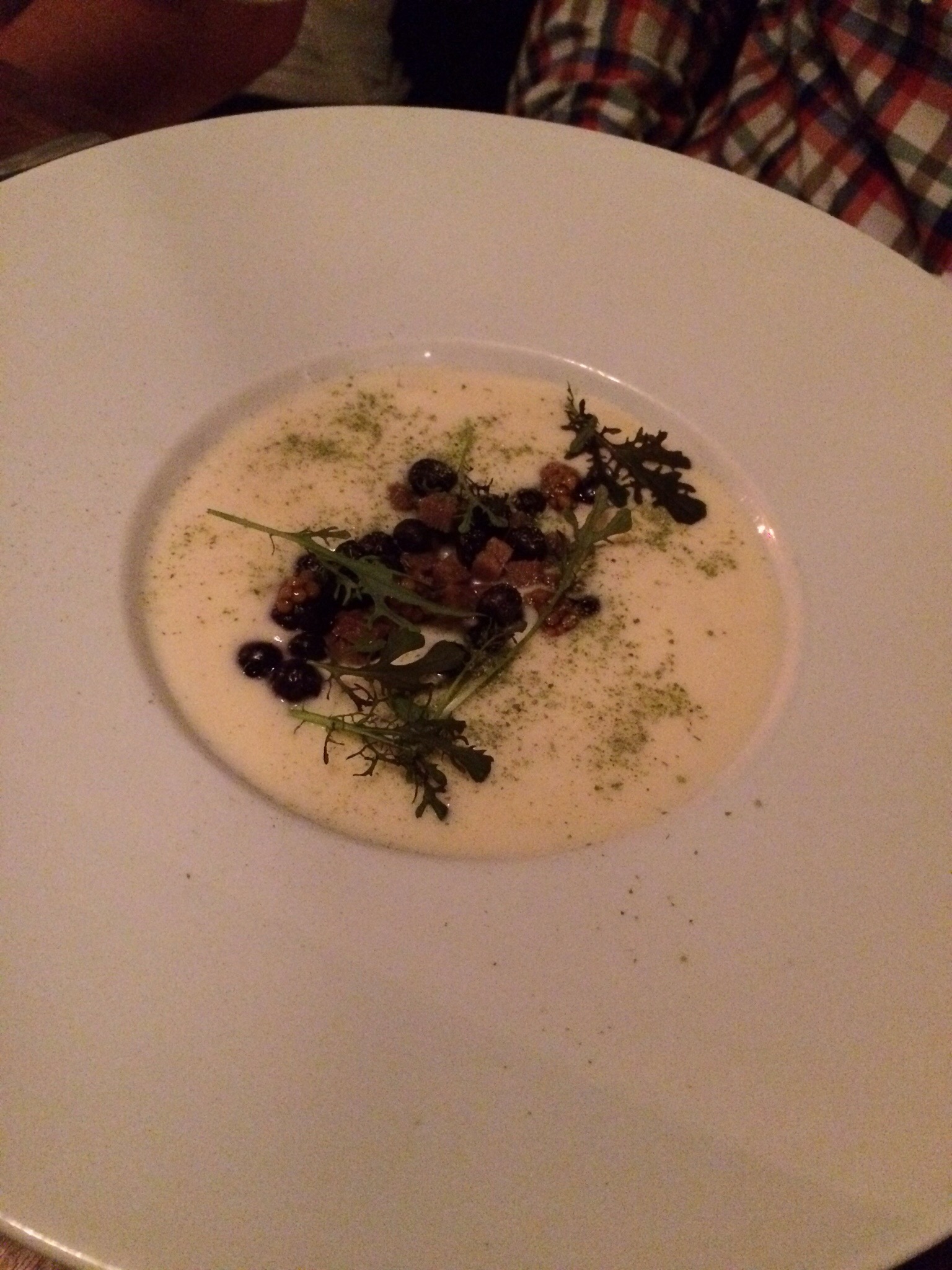 The menu is not big but frankly everything on the page sounded amazing. As a starter, I went with the crispy veal sweetbread served with a soubise sauce, comté, mustard and hazelnuts. I love sweetbreads so even though the rest of the items listed seemed like a weird mixture, I felt this dish call to me. It was superb – the sweetbread was cooked to perfection – juicy and tender but with a great exterior crunch. The onion sauce had a nice balance of sweetness and creaminess and the other elements worked well even if adding cheese, mustard and nuts to this would seem odd. Just trust me.