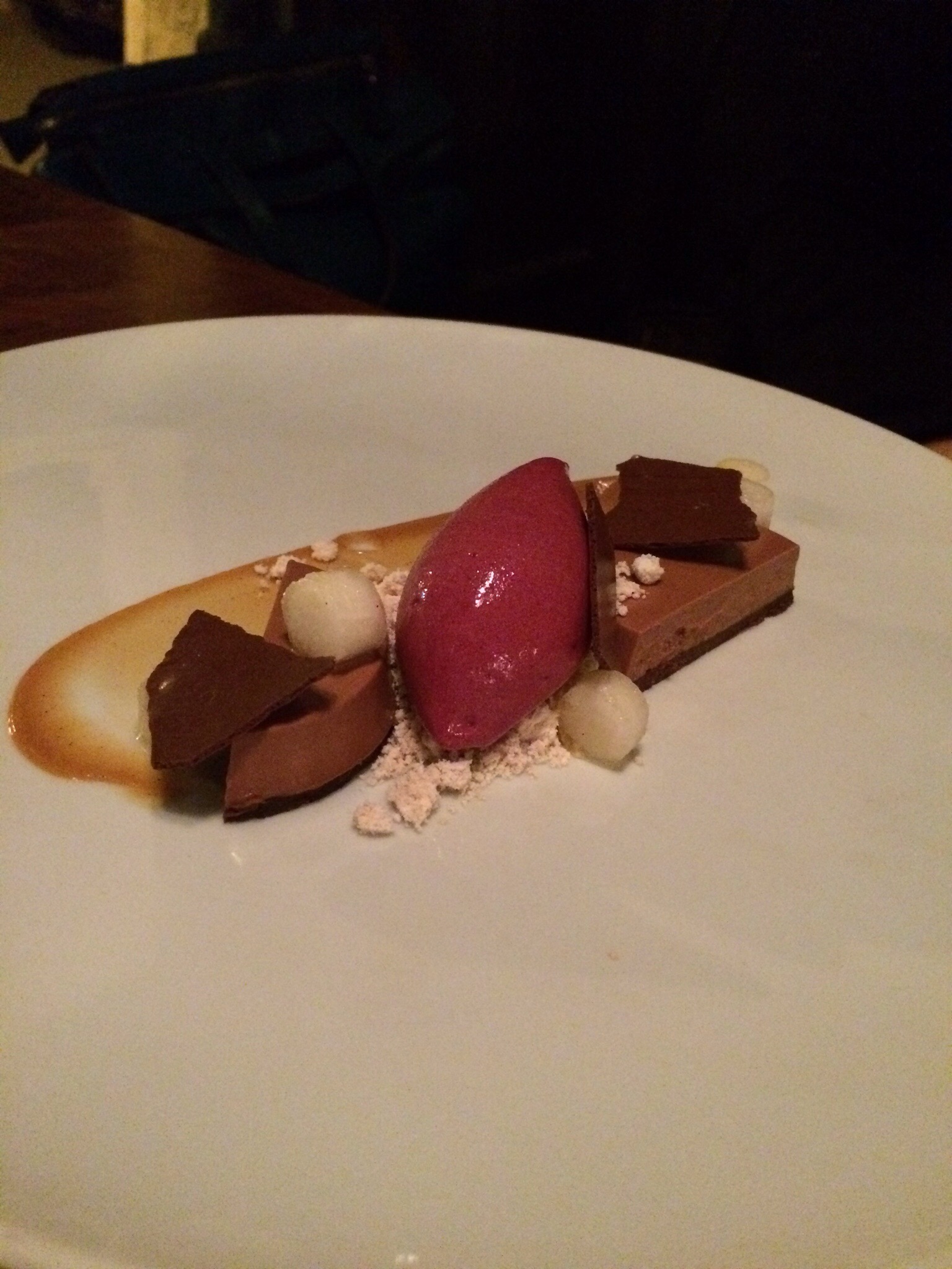 As a dessert, I decided to go with their Bomb – a caramel and milk chocolate tartelette served with an 80% chocolate sorbet. I loved the tarte – flaky and crisp with a great rich caramel flavour. Honestly I didn’t like the sorbet – it felt too watery to me which gave us less impact than it should have. A minor quibble in a great meal.