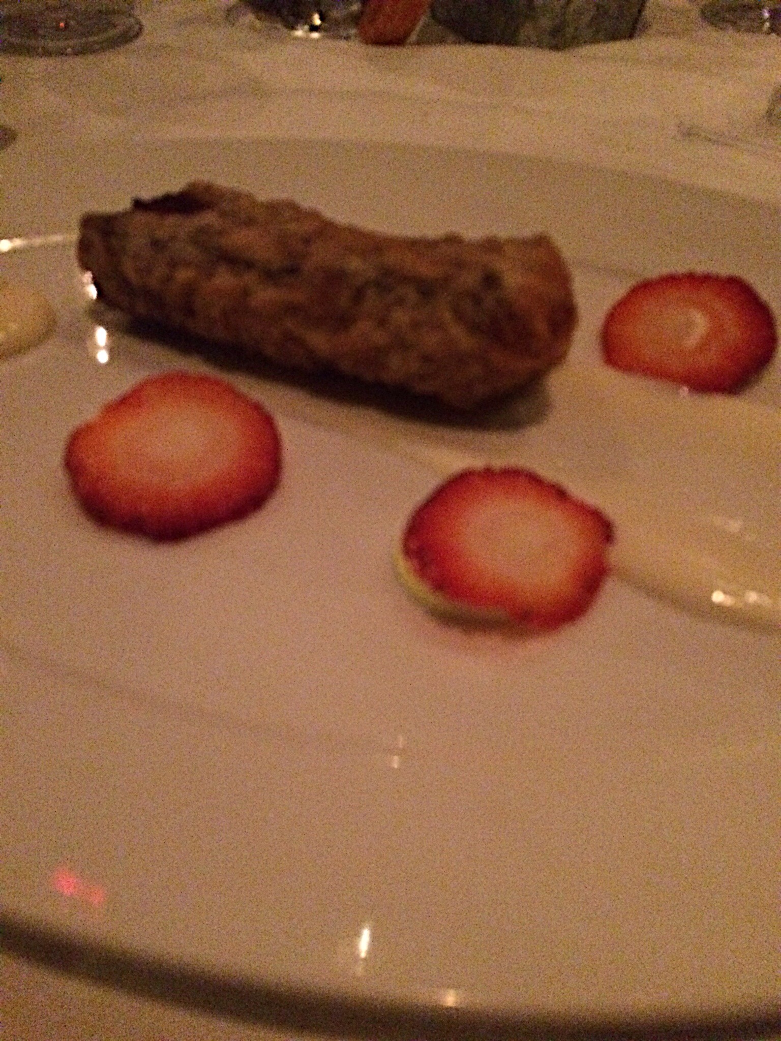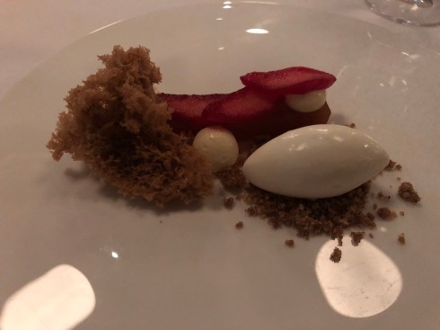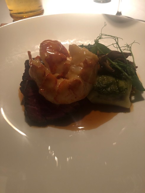 As a main dish, after much MUCH deliberation, I went with their version of the surf and turf, Le Chasse et Pêche, the component of which change regularly. On this occasion, it was buttery lobster and 30 day aged steak. Excellent preparation of both elements. The lobster was all rich and buttery goodness. The steak was seared perfectly and very tender. An excellent surf and turf.