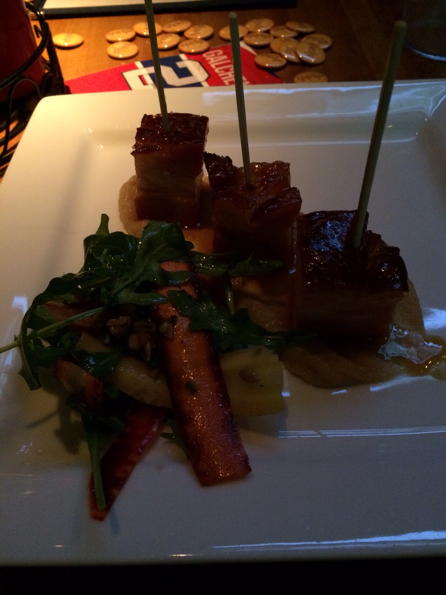 A dish that definitely surprised was the burnt salmon confit served with an apple and almond salad. I really didn’t know what to expect from salmon confit and the answer was a ridiculously soft texture. It may perhaps be seen as too soft, almost mushy to some people but we really dug it. The salad was very non-descript and honestly just felt like filler on the plate.