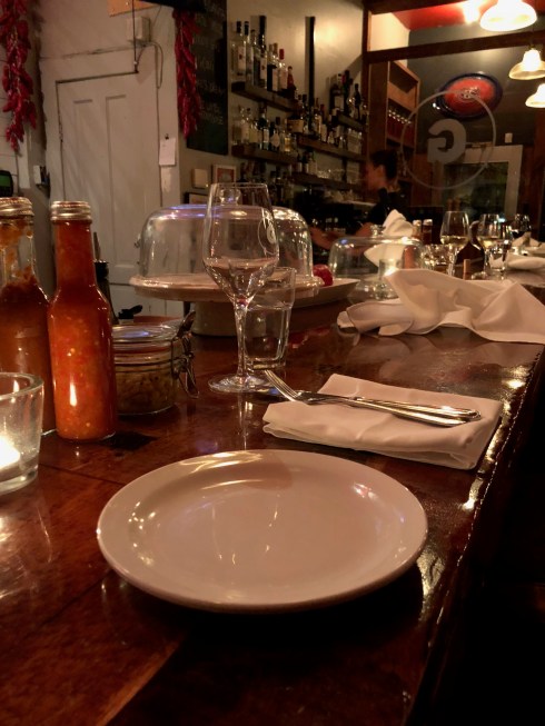 Very much in keeping with the neighbourhood itself, Le Diplomate is somewhat hidden from view – I actually drove by it on the way over – and pretty unassuming visually. The space is small – about 20 seats – and the majority of those seats are at the bar facing an open kitchen. The room is pretty barren deco-wise – the selection of 80s music playing overhead is the only loud thing in the room but that worked for me. The focus is truly on the bar and watching the team work. Chef Langille and his team of 2 work the entire space. When the chef serves your dishes and also does the dishwashing afterwards, you know you are in an intimate environment.