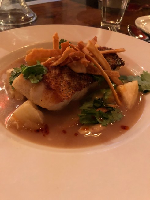 First up was the house-made Sourdough with a warm red pepper broth and sunflower seed oil for dipping. I am a sucker for a good sourdough and this one was excellent – using a 150 year old mother from England according to Chef Langille. The red pepper broth brought a nice optional sweetness to the sour bread and the oil, as always, was a good pairing to the bread.