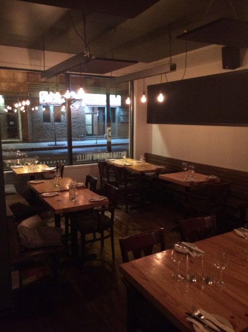 Restaurant Wellington has been around for 7 years now and has developed a solid reputation as a BYOW restaurant. It hits many of the classic tropes you see in the more successful BYOWs in Montreal – simple, clean decor, blackboard menus and a menu that is French in technique but that works with as much local produce as possible. Service was solid through the evening. It was a quiet Sunday night so ambience wise it was very relaxed and low key.