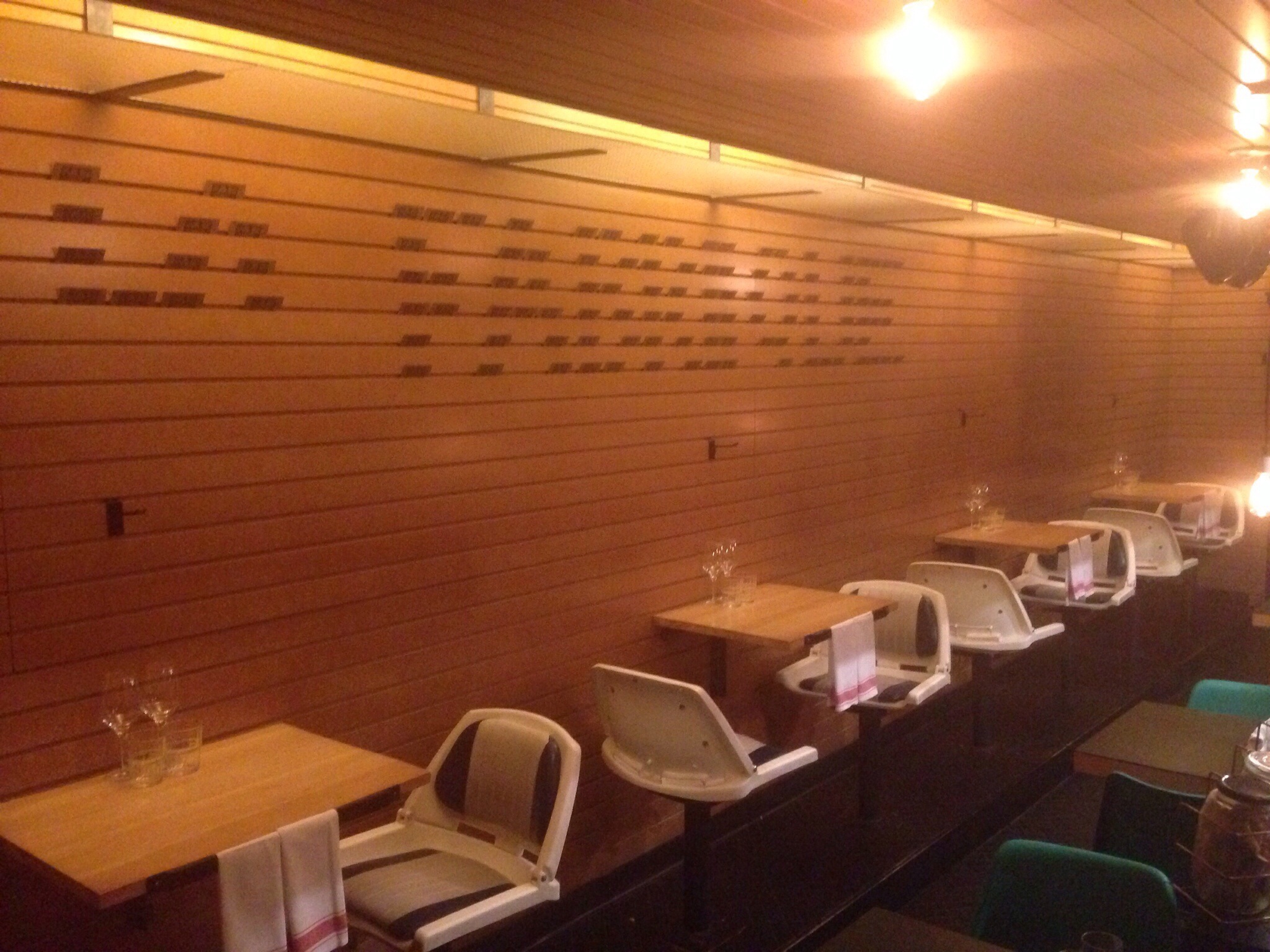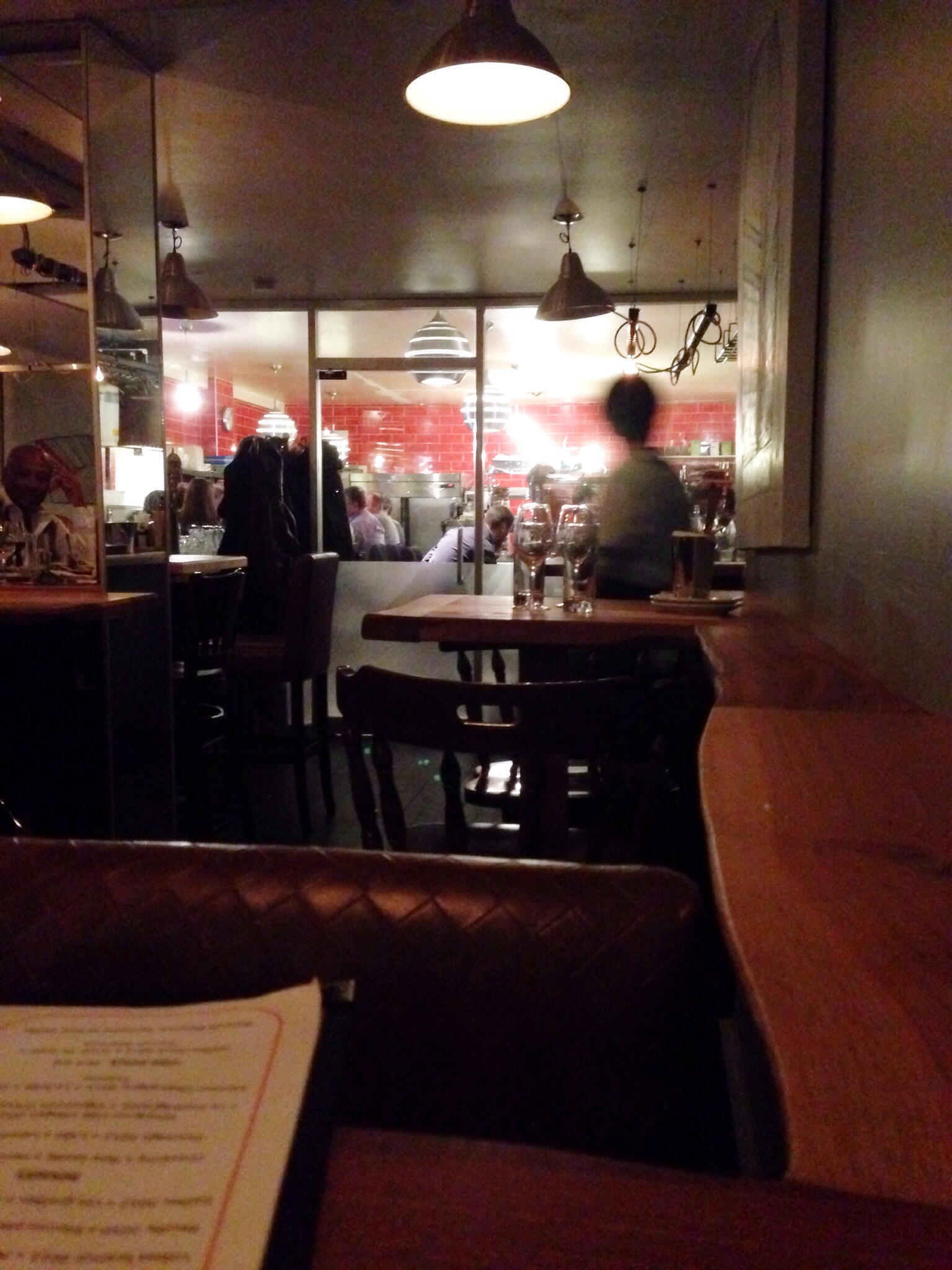 Located on the relatively barren strip of St-Laurent just before little Italy but after Mile End, the restaurant is a small, simple space with mirror walls, misshapen wooden tables and ample lighting via power bars on the ceiling. The real beautiful touch is the bright red tilted kitchen that is visible in the back of the space. A glass wall blocks out the sound from the dining room but we can see everything going on. There is also a large table located in the kitchen for larger groups to enjoy if you can get it. Overall, it is a very cozy and comfortable environment to enjoy a meal in.