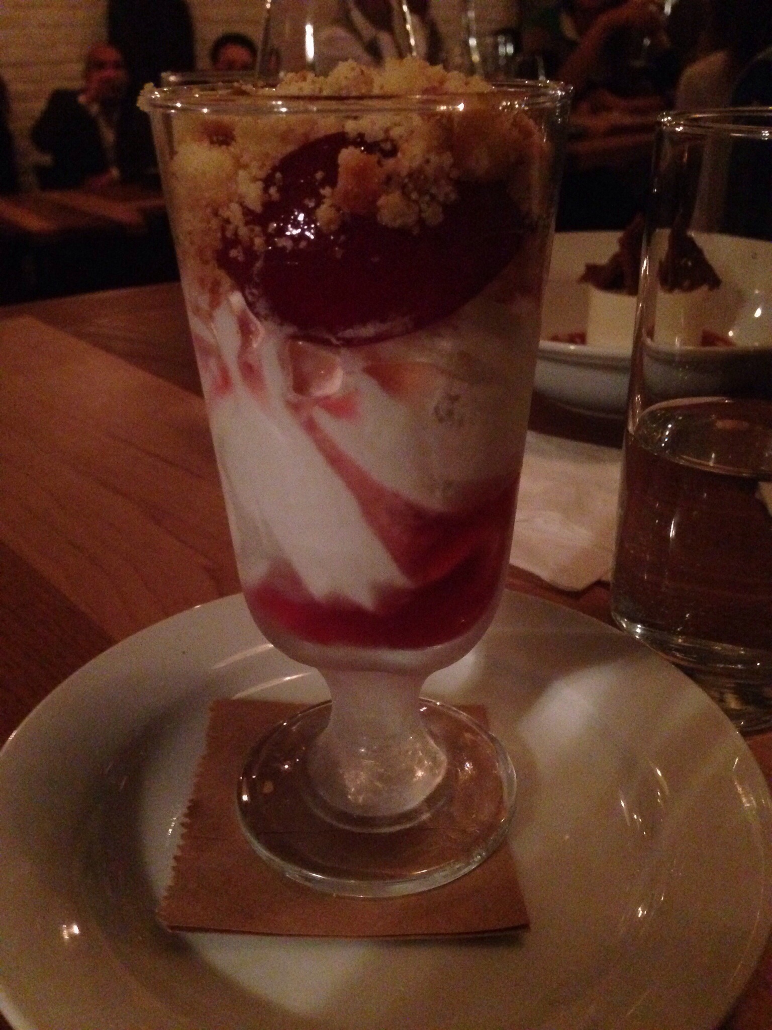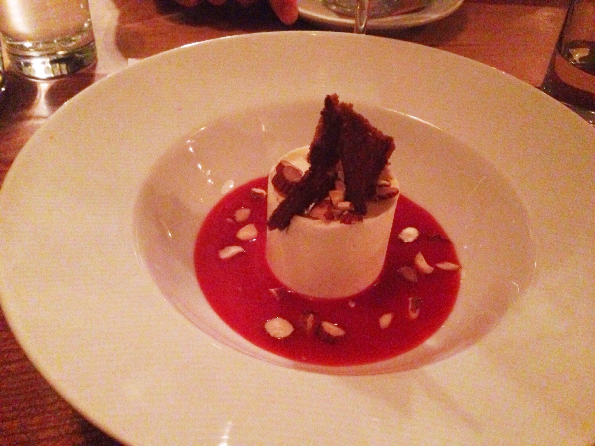 For dessert, there were 2 options plus a cheese plate. The cheese plate was a goat cheese with candied nuts, apple butter and a mini cake loaf. The goat cheese (I forgot the name of it sadly) was quite good – soft but still firm enough to handle properly. The other 3 elements of the plate allowed you to add different levels of sweetness to pair with the cheese – the apple butter was a particularly wonderful surprise in terms of its strong flavour and consistency.