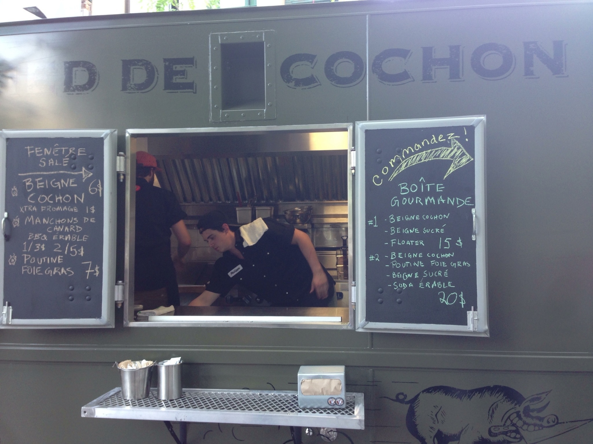 Next up, from the crew from La Salle à Manger, the trailer that is Pas d’Cochon dans mon Salon. These guys use charcoal grilling to deliver some great BBQ. They also offer some oysters and a few other items for some variety. They were one of the first “trucks” present last year during the festival run and have come back for some more – although their lack of a true truck prevents them from being part of the trial run in Ville-Marie.