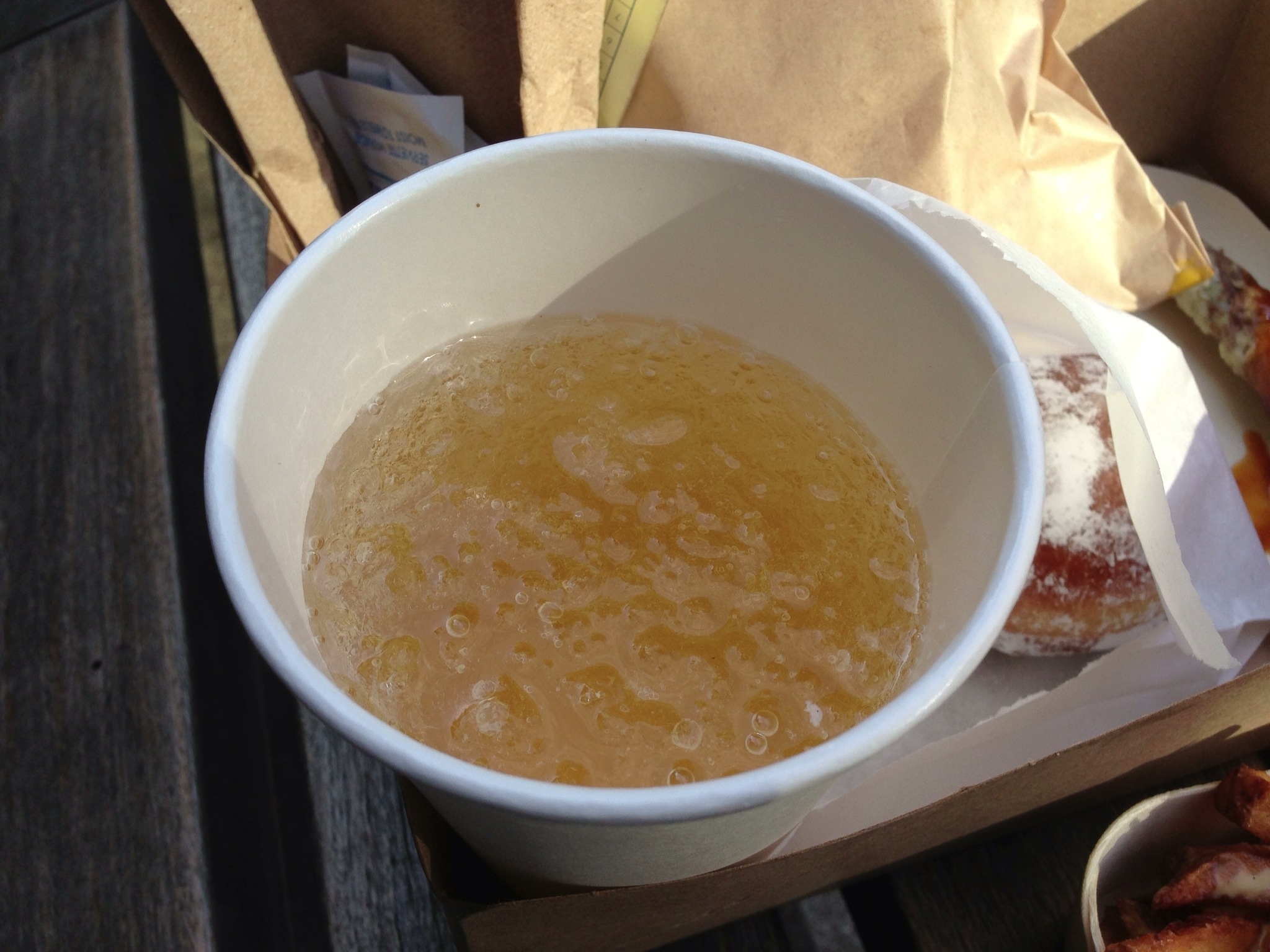The combo box itself contained four times – a maple soda, a foie gras poutine, a “beigne Cochon” and a “beigne sucré”. The maple soda was nice and refreshing with just the right amount of maple syrup flavor to make it sweet but not overbearingly so. This was one of the components of the Whiskey Soda I had up at the Sugar Shack…. Still the best one I have ever had.