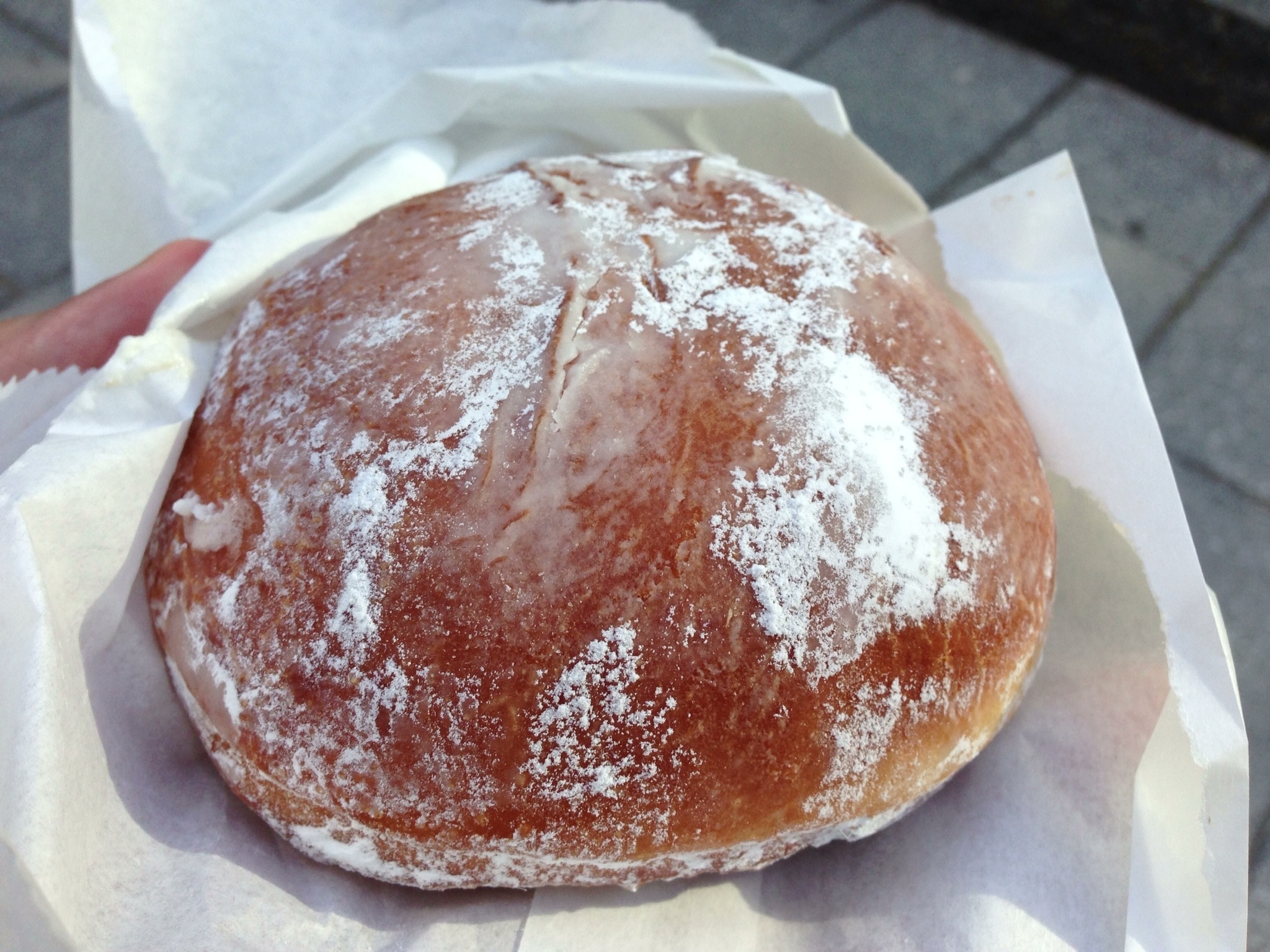 For the “beigne sucré”, they take the exact same doughnut but then stuff it with a filling of your choice and then add powered sugar. In my case, I went for the rhubarb option. Stuffed to the gills with a cream and rhubarb filling, the doughnut, which had been perfect for a sandwich, became a wonderful sweet treat to cap off the meal.