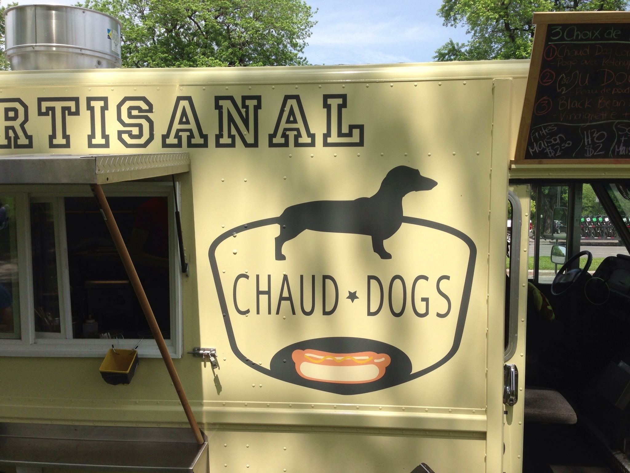 Another day, another food truck to try. This time around, I biked over to the George-Etienne Cartier statue on the slope of Mont-Royal to give Chaud Dogs a try. Chaud Dogs is, as one could probably guess based on their name, a truck that specializes in gourmet hot dogs. Everything they use is 100% homemade – be it the handmade sausages themselves down to the mustard and ketchup they use. They have a focus on using seasonal ingredients and a desire to support local farmers through local markets. An awesome concept that I believe we can all certainly get behind.