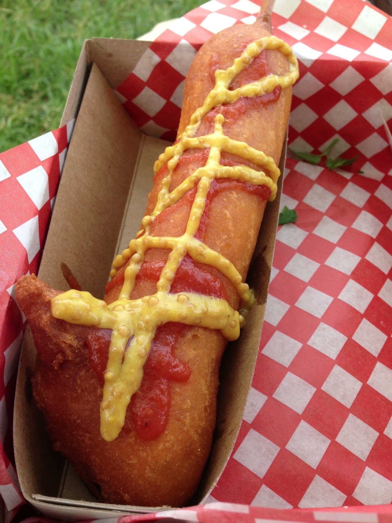 On this day, the truck was offering a homemade corn dog, a ‘Wu Dog”, black bean salsa, house fries, bottled water and a Lemon Thyme soda. While there was some temptation to try everything, I held off and decided to stick to the two dogs for this particular visit. If the dogs held up, then I would be back at some point to try the side-dishes.