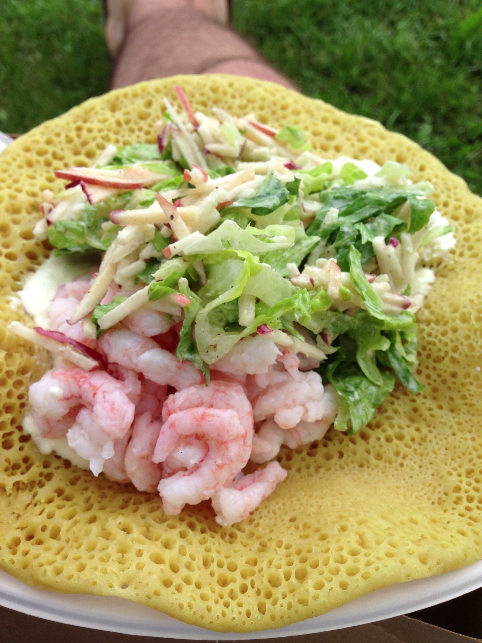 Second, something completely foreign to me: A Matane Shrimp Ploye. A Ploye is a New Brunswick dish – essentially a pancake of both buckwheat and wheat flour usually cooked only on one side. The flour mixture creates a light and somewhat airy crepe-like base to which Landry et Filles added some Matane shrimp, apples, lettuce and a wasabi mayo as a binder for the whole mixture. The shrimp was nice and fresh as one would expect from locally sourced shrimp. The apples added some crunch and a little sweetness to the mix and the wasabi mayo added just the right level of heat to the dish. All in all, a very nice well executed dish. It is a cool thing to try something completely new to you from a food truck and for that thing to be perfectly satisfying.