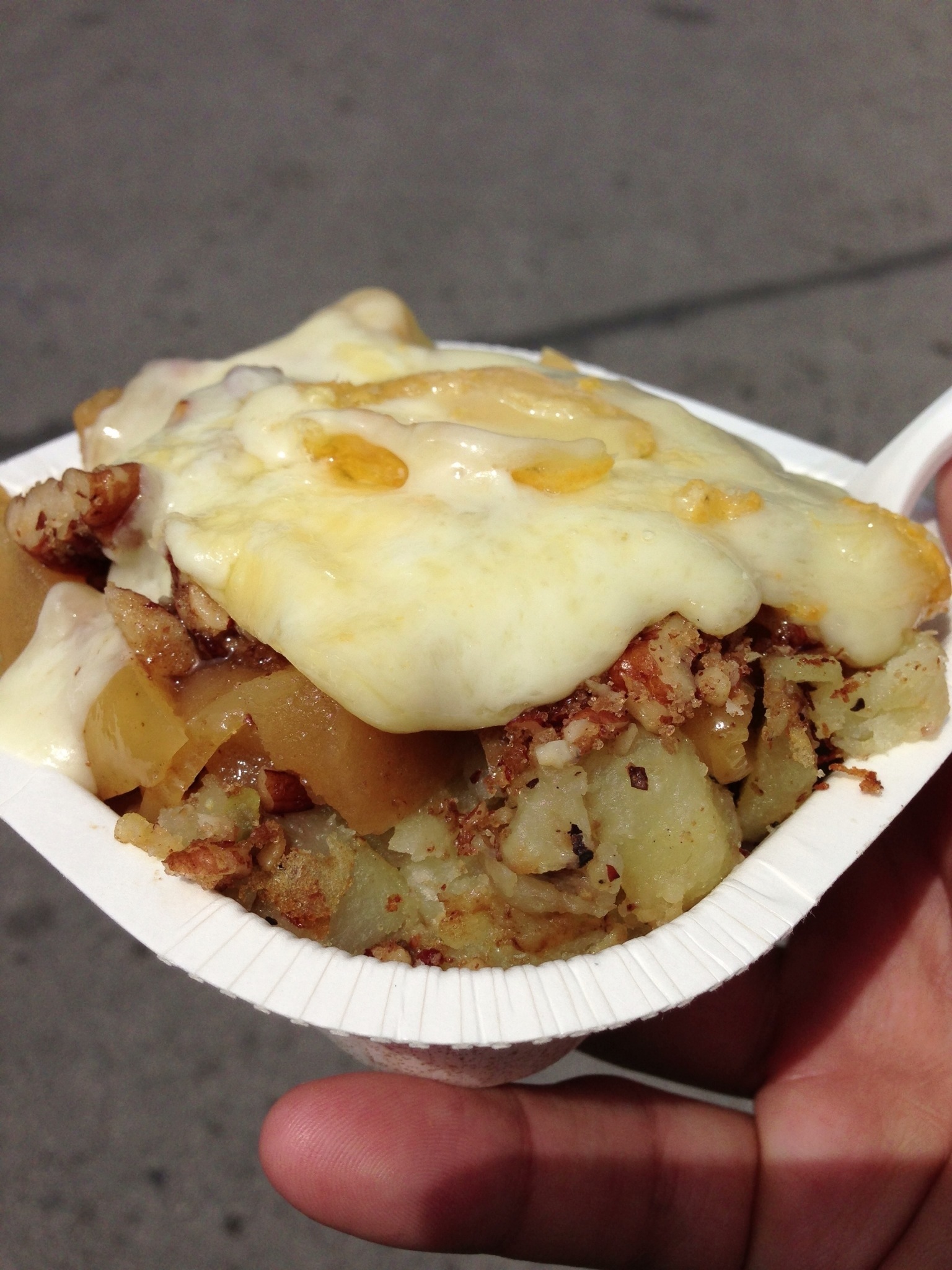 I went for their big combo option with an added item. That item was a fried duck leg with maple syrup BBQ sauce. Anyone who went to the Sugar Shack this past spring got a taste of this particular item. Nice tangy BBQ on top of some great duck. Nice crispy exterior while still keeping some moistness inside. Great option for only 3$!
