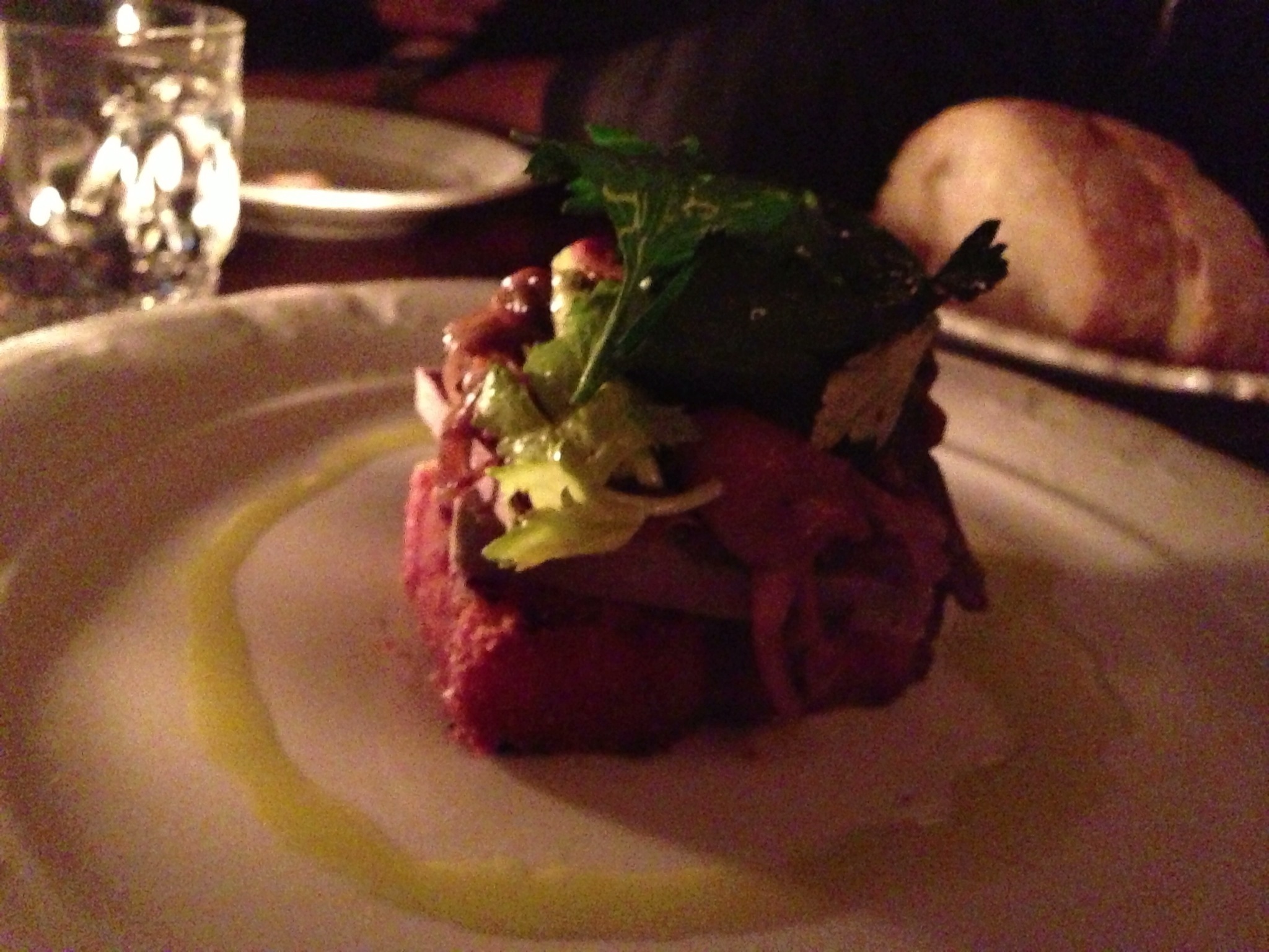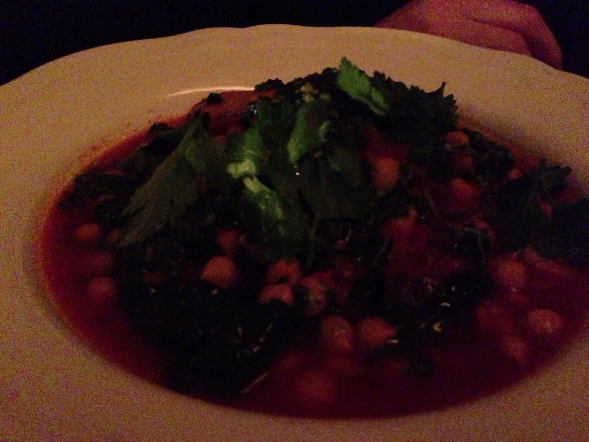For a Sunday night, Elena was certainly busy! The space is a sparse modern vibe – lots of whites and grays. The lighting is mostly ambient and indirect – a strong similarity to Nora Gray but the size and colors of the space make Elena less intimate compared to its sister. The interesting element of the space is the serving counter in the middle of the room used for alcohol, olive oils, salt, pepper, wine glasses, etc. It adds a interestingly retro element but the modern style of the table fits the look they have going.