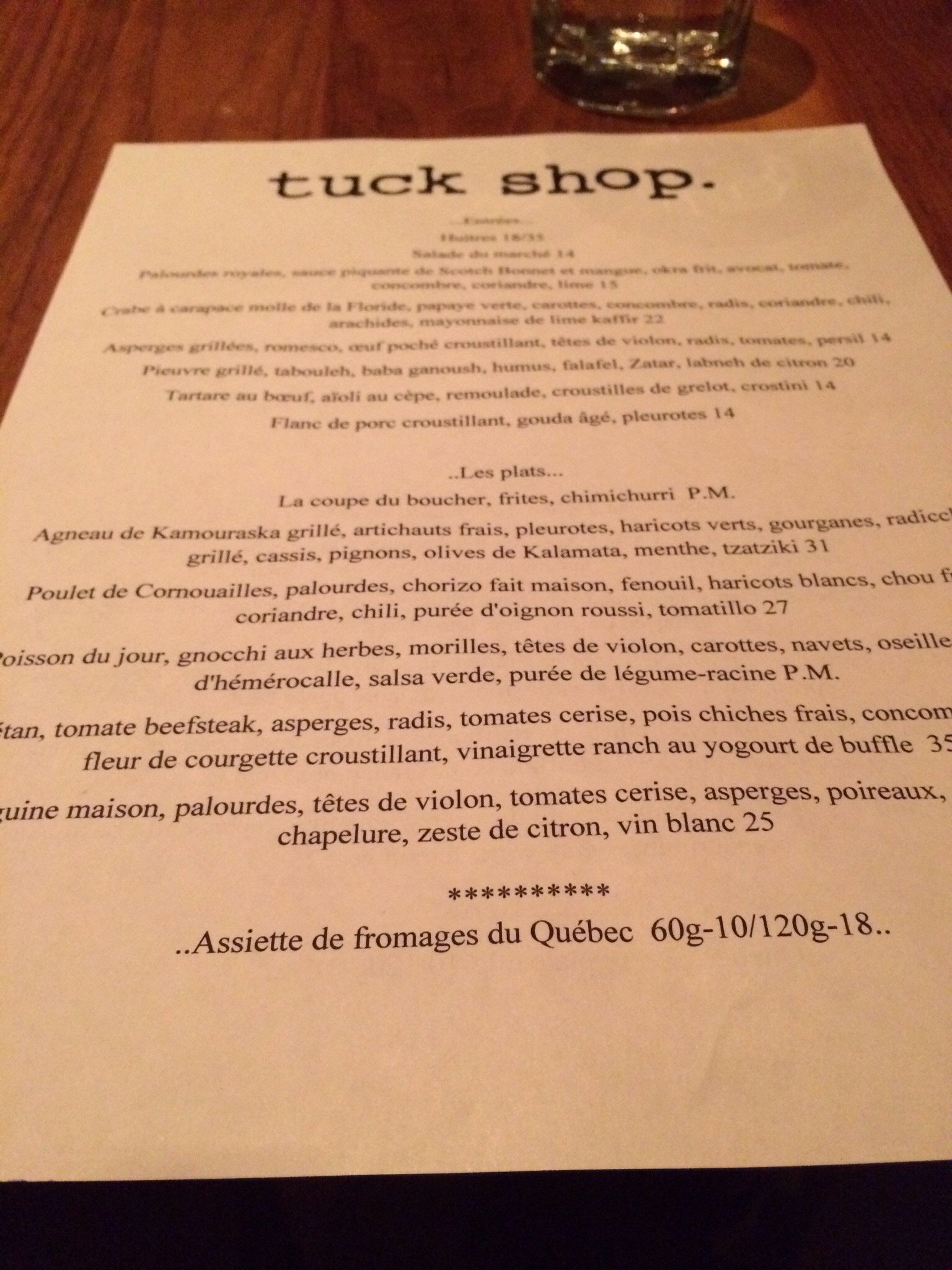About 5 years ago now, I read a review from Lesley Chesterman in the Montreal Gazette about a restaurant in St-Henri – a neighbourhood I knew nothing about – called Tuck Shop. Everything about what she wrote about the restaurant – from the food to the decor to the music even – peaked my interest and I made a note of it. Fast forward to now – I have moved to Pointe St-Charles and have spent tons of time in St-Henri visiting all the great new restaurants and spots that have popped up…. except for Tuck Shop. The one initial reason I even knew about the neighbourhood. Well that needed to change. Taking advantage of a rare evening free for both myself and my girlfriend, I set up a last minute dinner date to finally see if Tuck Shop was worthy of its high spot on my to-visit list.