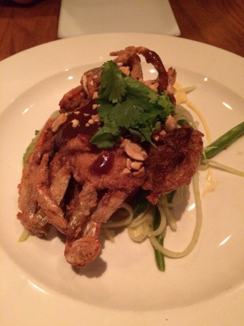 We decided to share an appetizer and went for the Florida soft shell crab with green papaya, coloured carrots, cucumber, radish, coriander, chili, peanuts and kaffir lime mayonnaise. A wonderfully light but flavourful dish. The crab was beautifully rich and tender with the outer crust providing a bit of crunch. The green papaya salad underneath provided some sweetness and a bit of heat which could be countered by the lime mayonnaise. A beautiful dish throughout.