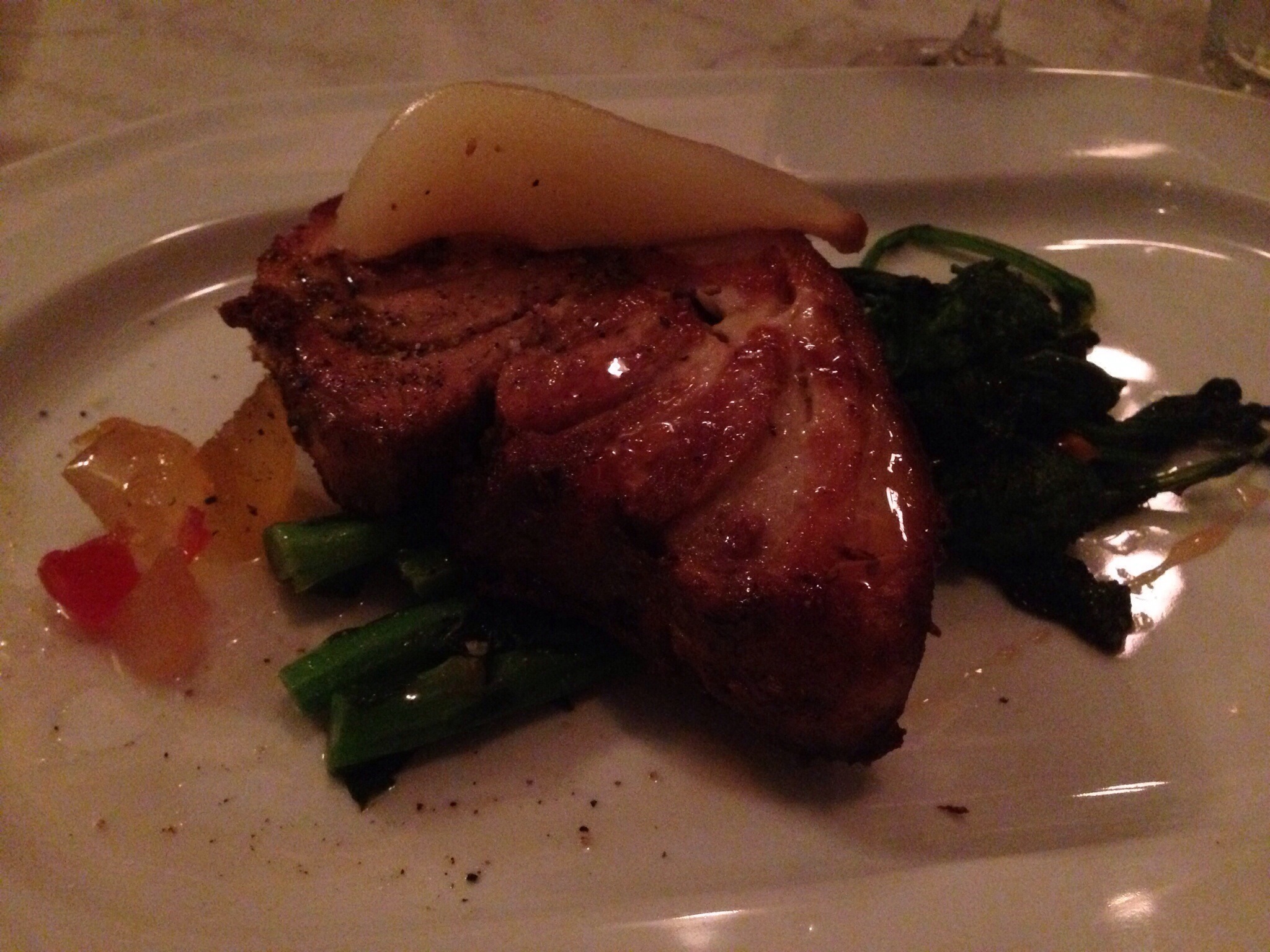 For the next course, I went with Nonno’s porchetta roast served with a vanilla pear, pan seared rapini and some candied fruits. This was an amazing roast – deliciously rich and fatty pork meat with crispy skin. The skin wasn’t the crispest I’ve ever had but still wonderful. The inclusion of the vanilla pear and the candied fruits provided some sweetness to balance with the inherent saltiness and fattiness of the roast itself. I love porchetta and Impasto’s take just reinforced my love.