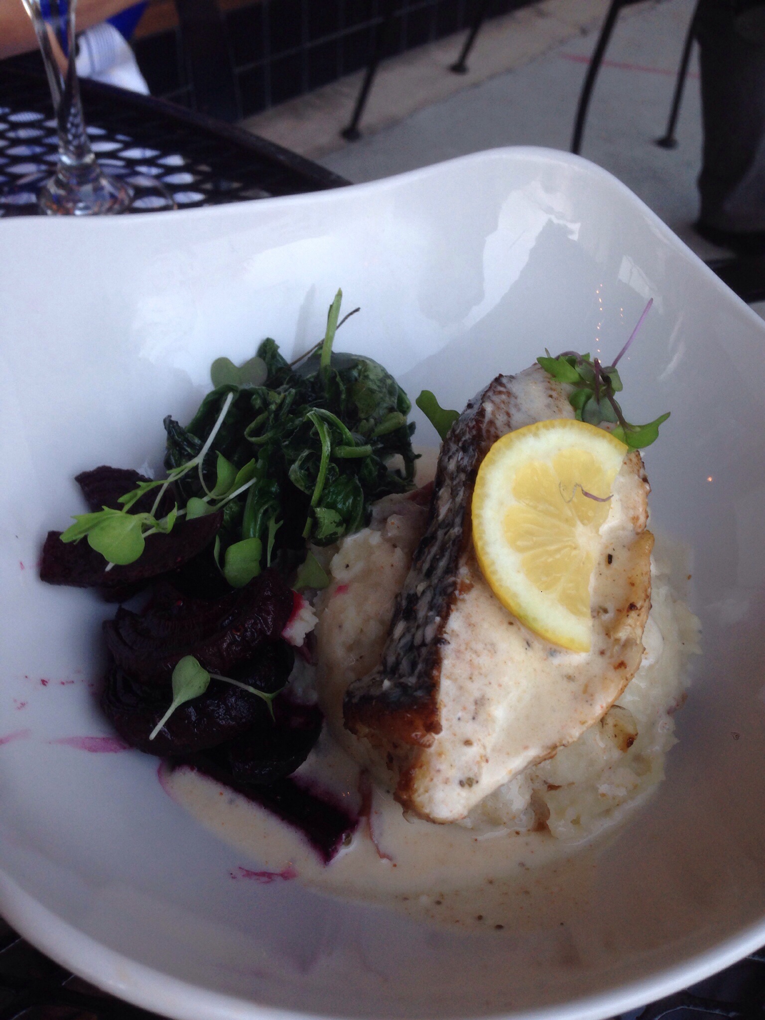 The next dish was their market fish of the day – wild stripped bass with white wine rosemary cream sauce, garlic mash, roasted beets and lemon arugula. Just a knockout of a dish – well executed and great depth of flavours. The fresh bass was cooked beautifully and paired nicely with the creaminess of both the sauce and the mash. The rosemary cream sauce had great notes of rosemary and white wine without overpowering the natural flavours of the bass. The rest of the dish mixed nicely and brought some other elements to the plate – citrus and pepper from the lemon arugula and some earthiness from the beets. Wonderful all around.